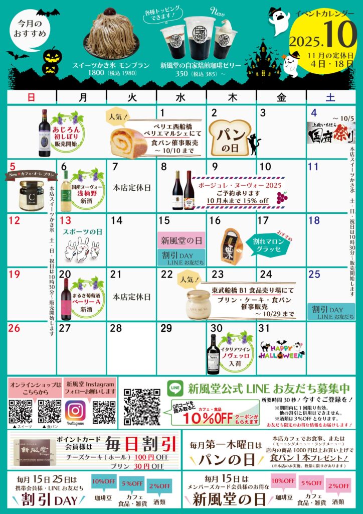 新風堂本店 新風堂アリオ店 ふろまーじゅ 会社概要 採用情報 お問い合わせ オンラインストア 公式 楽天 HOME 新風堂本店 新風堂アリオ店 ふろまーじゅ 会社概要 採用情報 お問い合わせ オンラインストア 公式 楽天 News新着情報 10月のイベントカレンダー 更新日:2025/10/8 新着情報一覧に戻る
