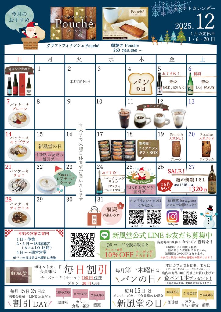 新風堂本店 新風堂アリオ店 ふろまーじゅ 会社概要 採用情報 お問い合わせ オンラインストア 公式 楽天 HOME 新風堂本店 新風堂アリオ店 ふろまーじゅ 会社概要 採用情報 お問い合わせ オンラインストア 公式 楽天 News新着情報 12月イベントカレンダー 更新日:2025/12/4 新着情報一覧に戻る