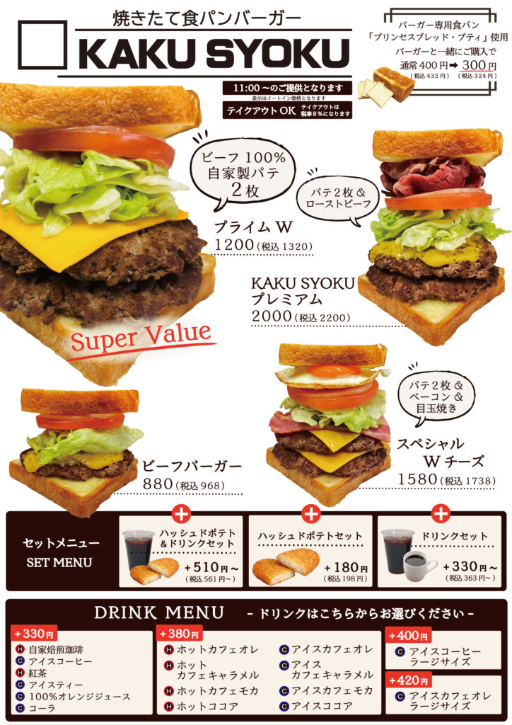 食パンバーガー「KAKU SYOKU」カフェメニューに登場!!